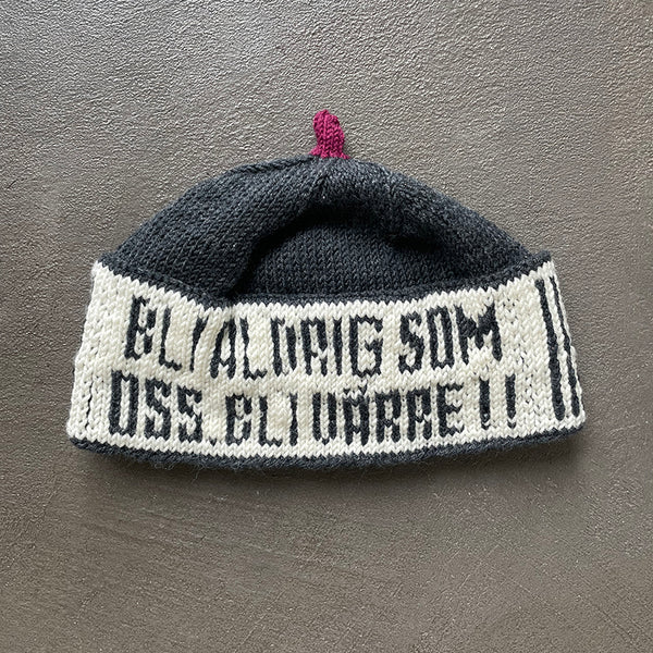 Handstickad mössa i 100% merinoull av Karin Carlberg aka DJ Grandma, för dig som inte vill hålla huvudet kallt. Endast 1 st i varje storlek/färg.